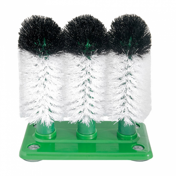 Conjunto de tres cepillos para lavar vasos hechos de poliéster.