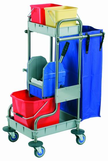 CARRO FREGADO FACIL ACERO INOX. MOD. 570 CON 1 CUBO DE 25 L., 1 PRENSA, 2 CUBOS DE 6 L. Y 1 BOLSA.
