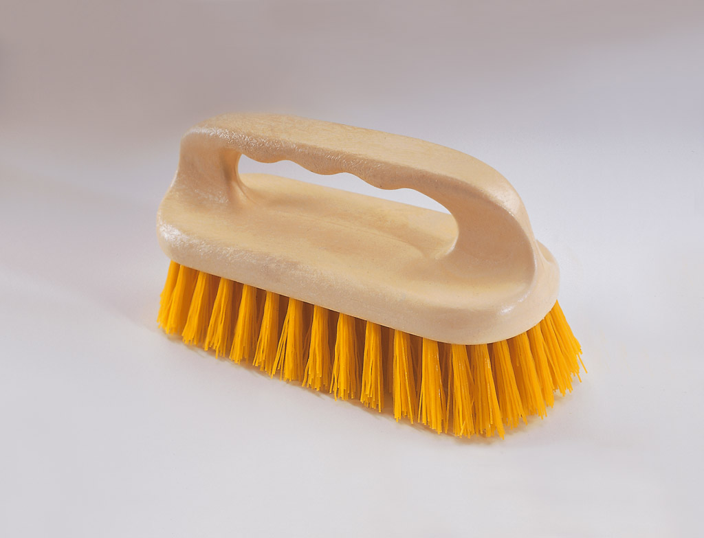Cepillo para fregar suelos y superficies, fabricado en fibra de polipropileno y con una práctica asa salvamanos para facilitar su manejo.