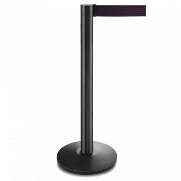 Práctica columna móvil con cinta retráctil para delimitar espacios.