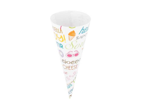 Conos de papel para cucuruchos de galleta. Indispensable en cualquier heladeria. Evita el contacto directo entre las manos y la galleta, para una mayor higiene. Diseño moderno y desenfadado.