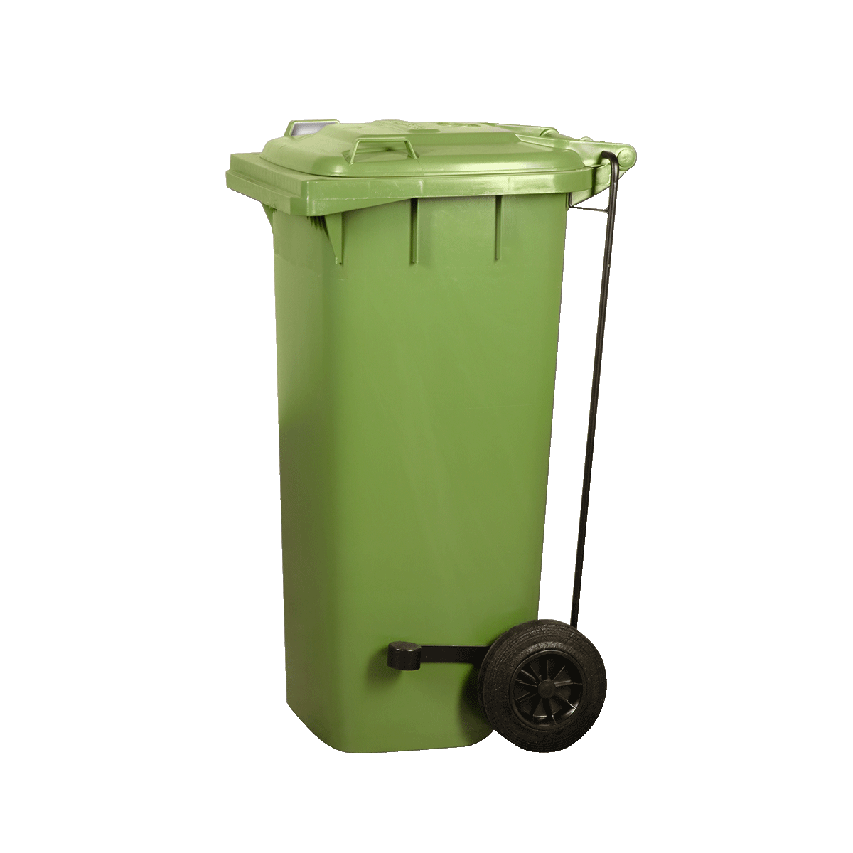 Contenedor especialmente diseñado para el exterior y la recogida automática. Es resistente a rayos ultravioletas e infrarrojos. Con pedal. Asa ergonómica y ruedas de caucho macizo. Capacidad de carga de hasta100 Kg.