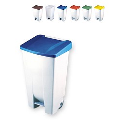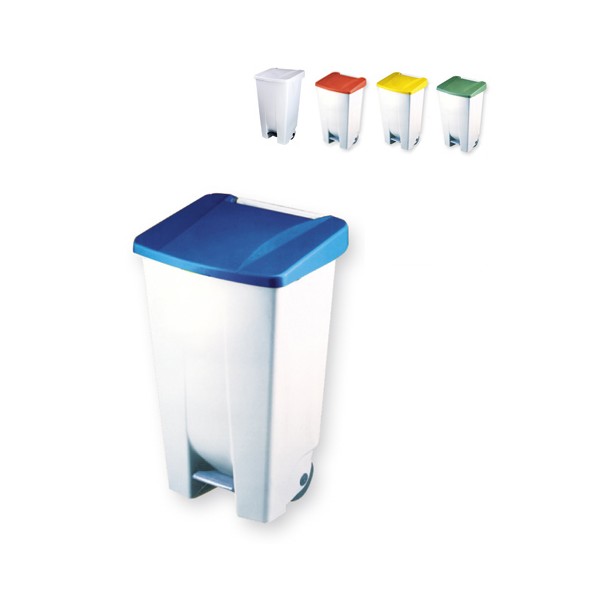 Contenedor con tapa pedal para recogida de basura y residuos en industrias, restaurantes, catering, colectividades, parques, comunidades de vecinos, colegios, residencias, etc. Perfecto para hostelería, pues cabe debajo de la barra del bar. Muy resistente y duradero por su material 100% virgen. Recogida selectiva de residuos en origen por su tapa en 5 colores (azul, blanco, rojo, amarillo, verde). Fácil almacenamiento y montaje. Gracias a sus aristas redondeadas es fácil de limpiar. Fácil de transportar por su asa resistente. Identificación del residuo con codificación de color. (papel y cartón, vidrio, envases).