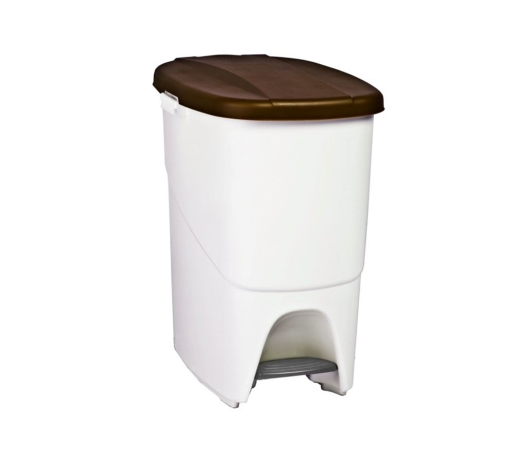 CONTENEDOR ECO CON PEDAL CUERPO BLANCO Y TAPA MARRÓN 25L 39X27X42CM