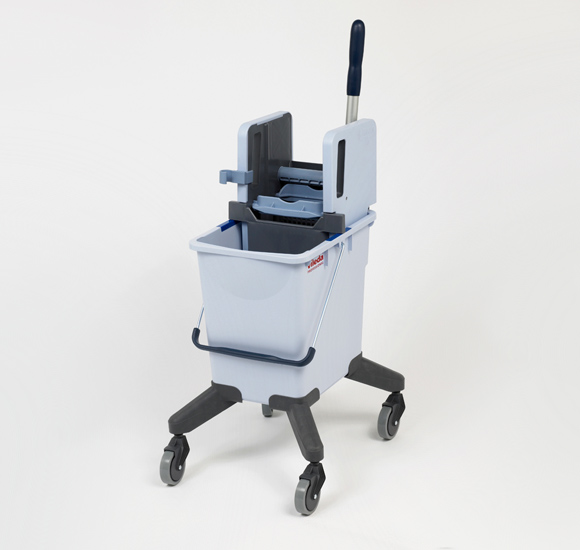 Su construcción esta basada en una prensa vertical única, obtienen los mejores resultados en el rendimiento de la limpieza. Apto para todo tipo de mopas planas, así como mopas Kentucky (hasta 400 gr).El kit se compone de cubo de 25 L, prensa vertical y cuatro ruedas. Las ruedas pueden ser instaladas fácilmente.