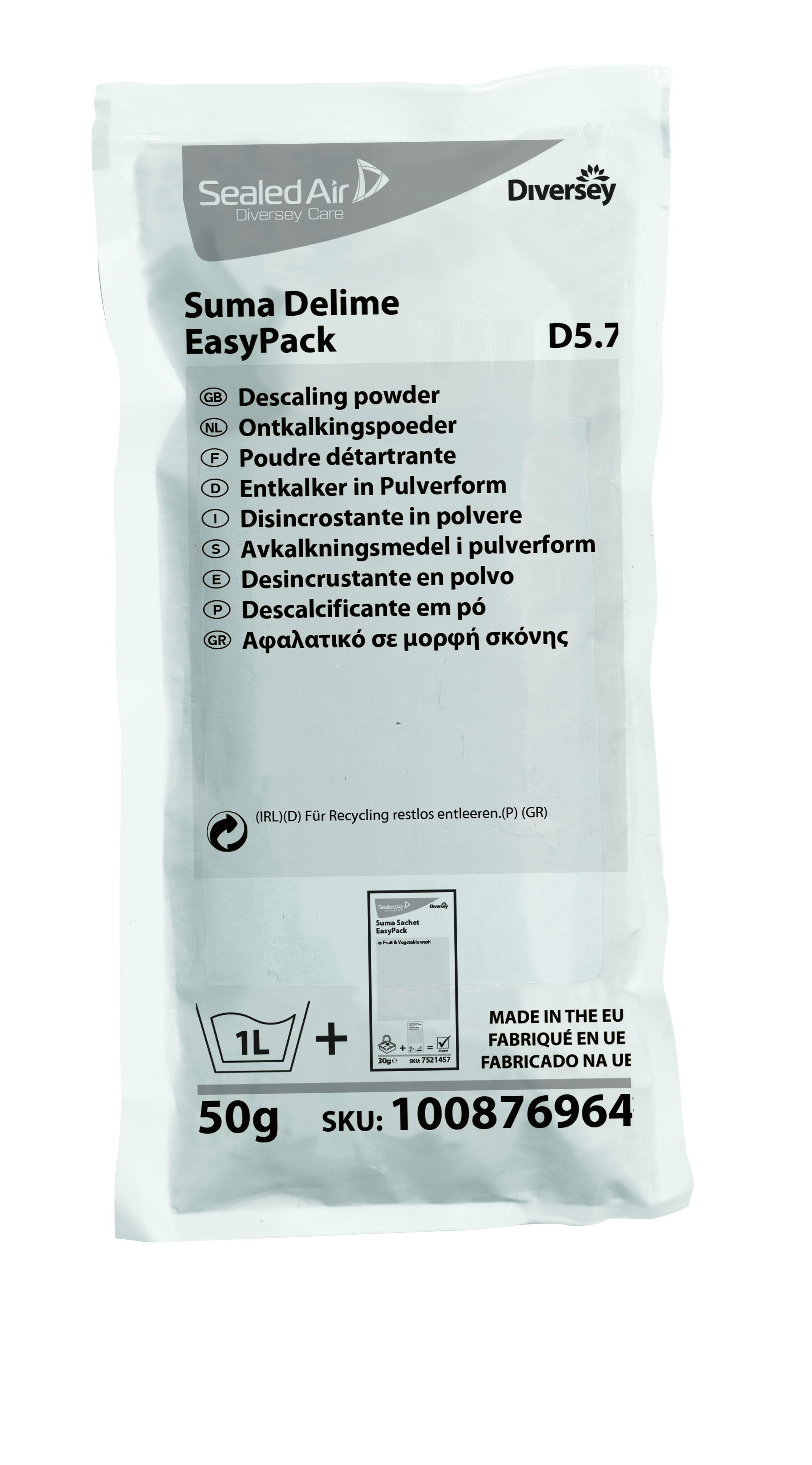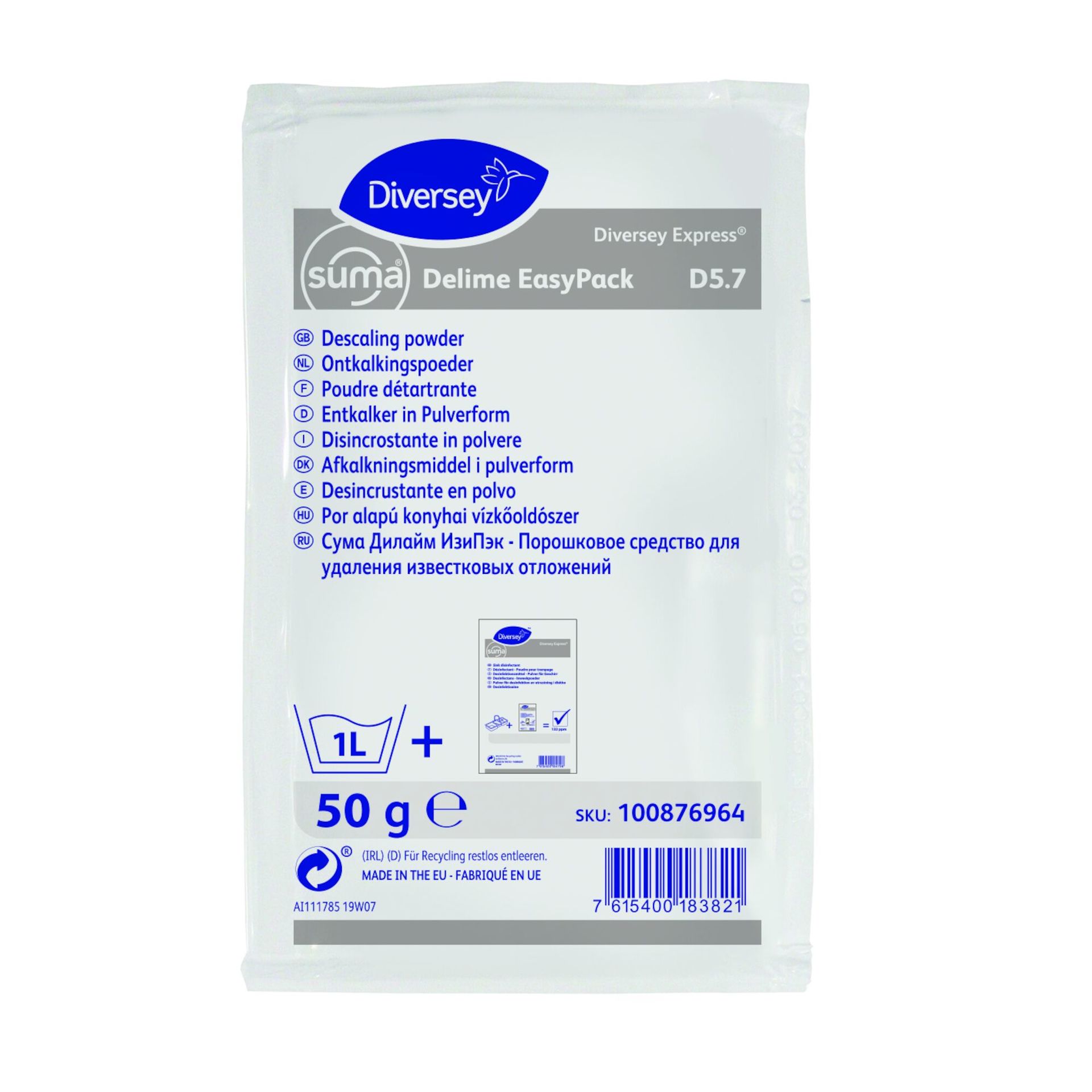 Suma Delime EasyPack es un desincrustante ácido sin fosfatos/fosfórico para eliminar depósitos de cal de los equipos de cocina, utensilios y para desincrustar máquinas lavavajillas. El ácido orgánico consigue una efectiva descalcificación de todo tipo de superficies. La fórmula no es corrosiva a la piel. Envasado en sobres proporcionando a los usuarios comodidad y flexibilidad para su uso.