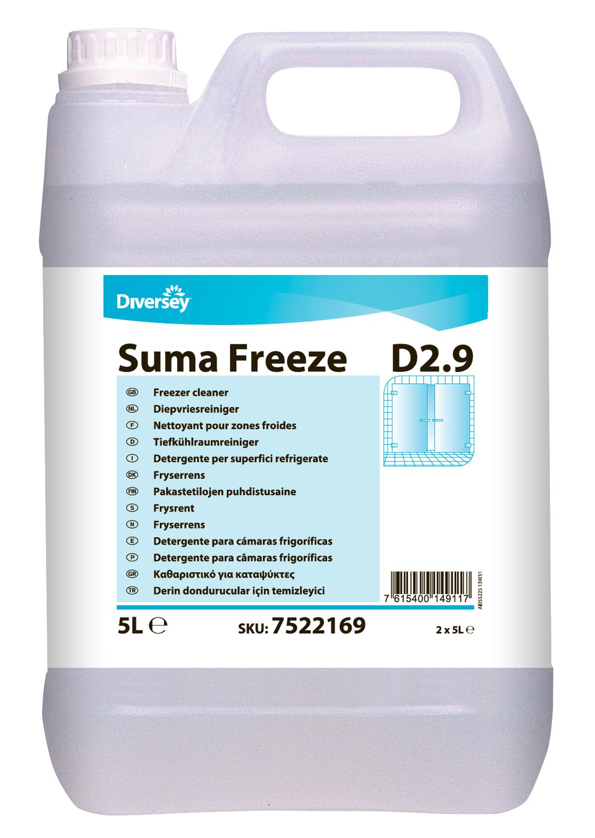 Suma Freeze es un detergente líquido preparado para usar directamente sin diluir, especialmente diseñado para utilizar en cámaras frigoríficas / zonas refrigeradas.