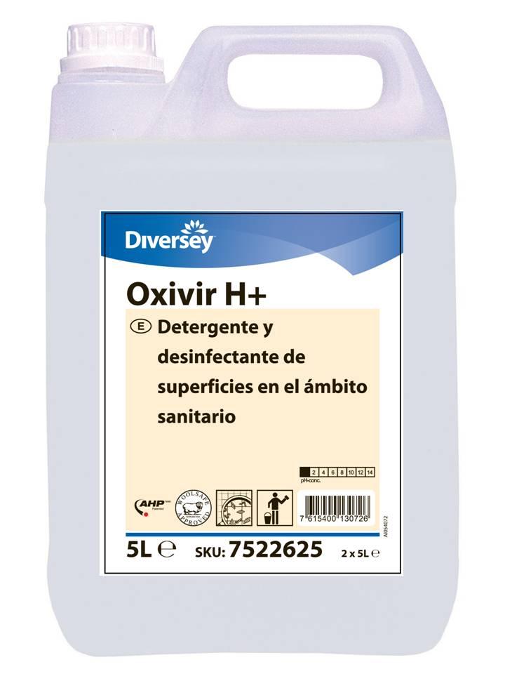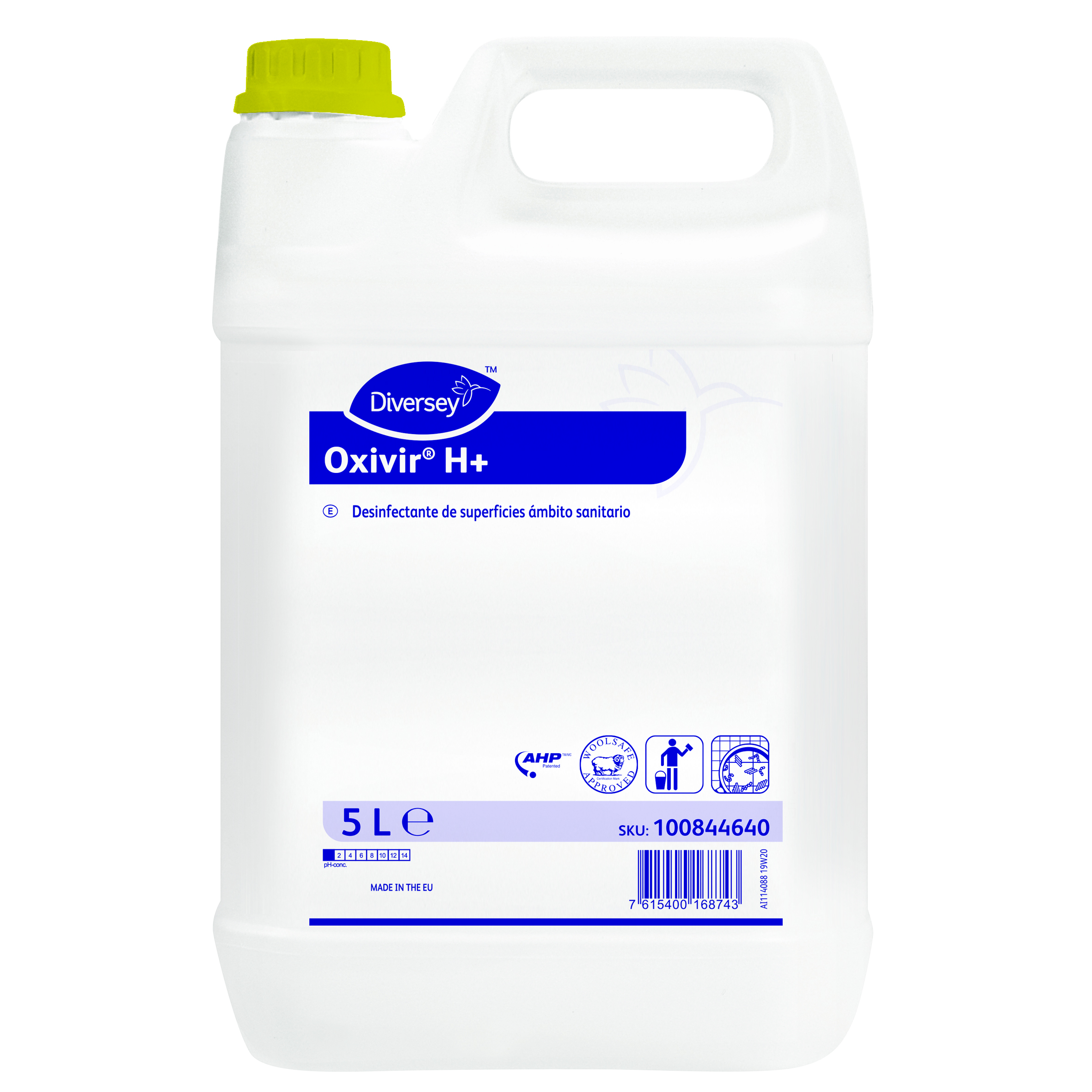 Efectivo contra un amplio espectro de microorganismos incluyendo, bacterias, virus, hongos y levaduras. Eficaz detergente. Sin perfume. Basado en la innovadora tecnología patentada de Peróxido de Hidrógeno Acelerado. Oxivir H+ es un detergente desinfectante concentrado líquido para usar en la limpieza y desinfección de todas las superficies duras resistentes al agua y la mayoría de mobiliario delicado.