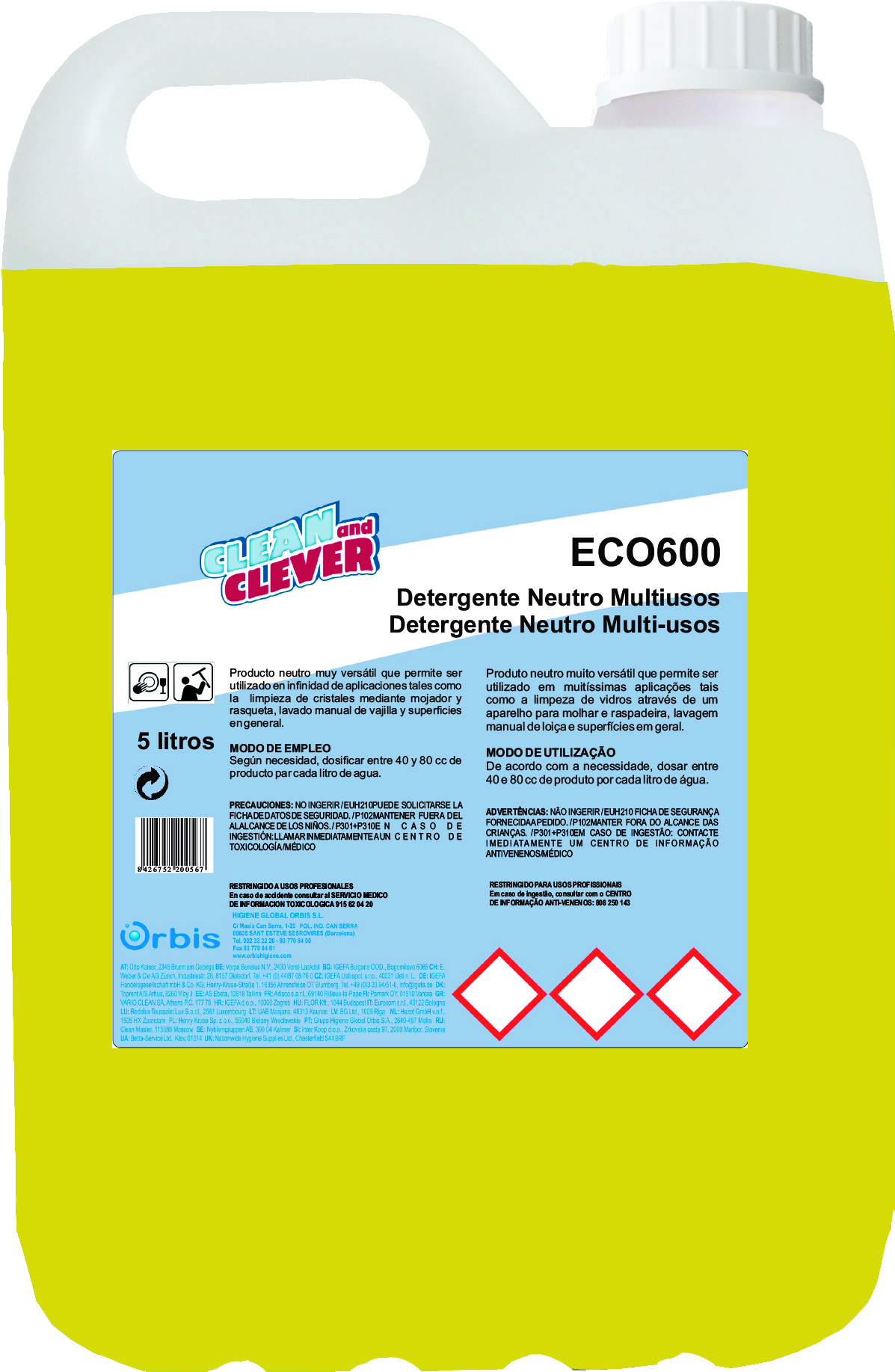Producto ideal para el lavado manual de vajillas, limpieza y desengrase de todo tipo de superficies, azulejos, suelos, eliminando todo tipo de residuos orgánicos, sin verse afectada su eficacia por el uso de aguas de extremada dureza. Su formulación, a base de tensioactivos y su pH neutro no daña las manos más delicadas.