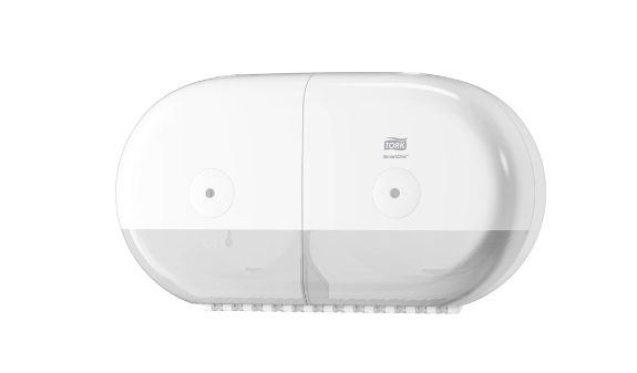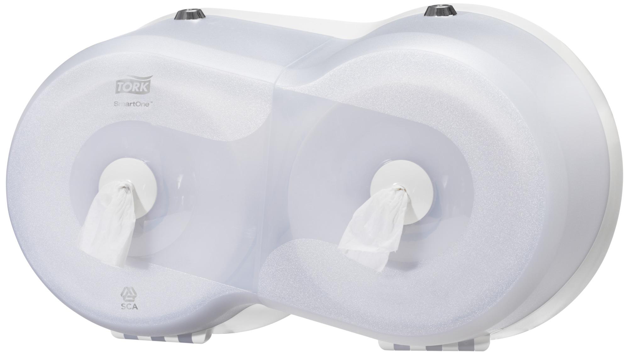 Reduce los costes y el mantenimiento en aseos de afluencia alta con Tork SmartOne® Dispensador Mini Doble Papel Higiénico. Mejora la higiene, ya que los usuarios solo tocan lo que van a usar. Disminuye el riesgo de escasez de papel gracias a este dispensador de alta capacidad.