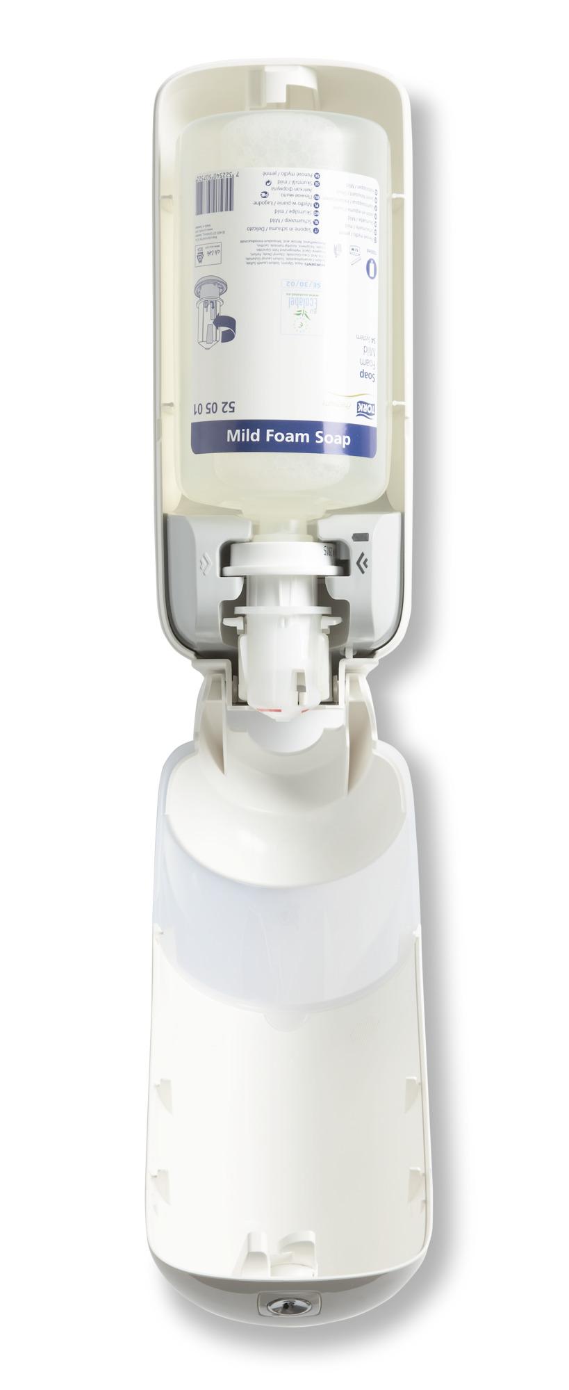 Ayuda a reducir el riesgo de contaminación cruzada con este dispensador sin contacto dotado de sensor. Ahorra tiempo al personal con el recambio sencillo certificado por la Asociación Sueca de Reumatismo, probado de acuerdo con el test Design for All y publicado en el Swedish Design Research Journal (2011). Garantiza una buena higiene de la manos, ya que la botella sellada de fábrica con un nuevo dispensador para cada recambio ayuda a reducir el riesgo de contaminación y a proteger la fórmula.