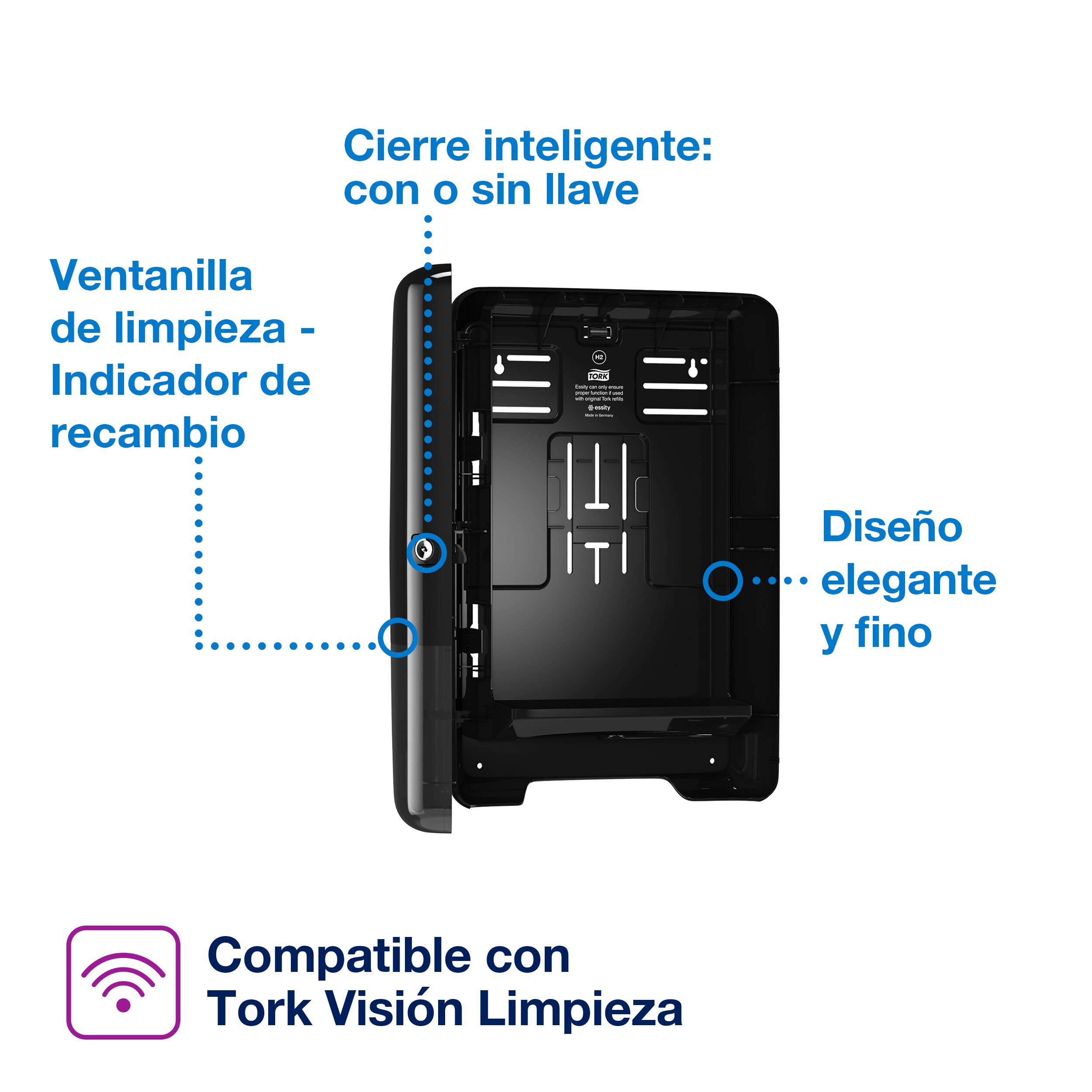 El dispensador de toallas de mano entreplegadas Tork Xpress® de la línea Elevation es adecuado para entornos que exigen comodidad e higiene. Este dispensador de diseño delgado y atractivo reduce el consumo gracias a la dispensación individual. Los dispensadores de la línea Tork Elevation tienen un diseño moderno y funcional que causará buena impresión a sus clientes. La dispensación individual reduce el coste de uso y los residuos higiene óptima ya que los usuarios solo tocan la toalla que utilizan paquetes fáciles de reponer para evitar que se acabe el papel mantenimiento sin complicaciones gracias a la protección frente al sobrellenado.