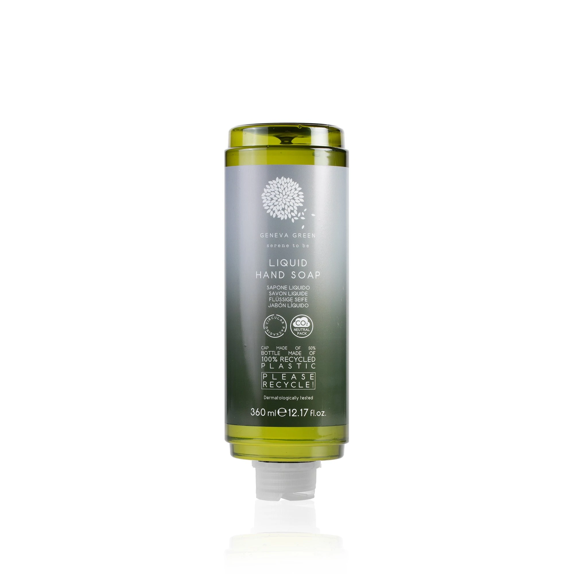 El jabón de manos líquido Geneva Green limpia suavemente la piel, la fórmula ligeramente perfumada está enriquecida con extracto de aloe vera.