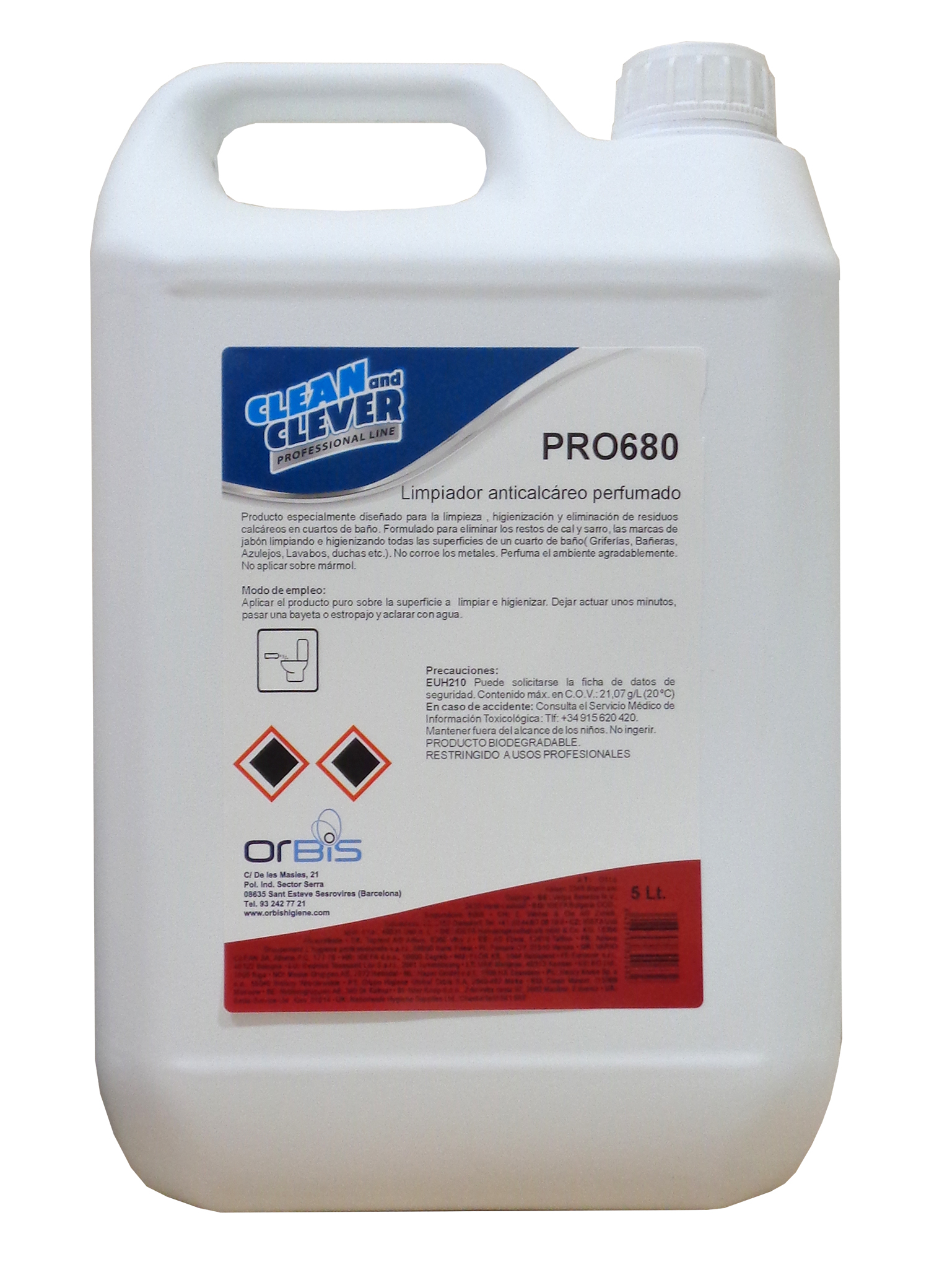Producto especialmente diseñado para la limpieza, higienización y eliminación de residuos calcáreos en cuartos de baño. Formulado para eliminar los restos de cal y sarro, las marcas de jabón limpiando e higienizando todas las superficies de un cuarto de baño (griferías, bañeras, azulejos, lavabos, duchas etc.). No corroe los metales. Perfuma el ambiente agradablemente. No aplicar sobre mármol.