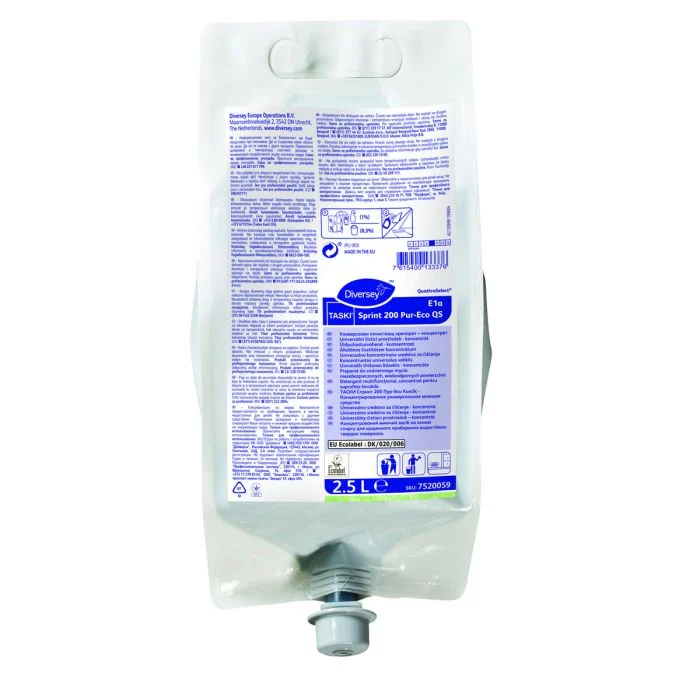 Especificaciones medioambientales: Sprint 200 Pur-Eco QS cumple con el criterio ”Flower” de la UE, número de licencia 2011/383/EC y con el criterio cisne nórdico en su versión para limpiadores 4.6 válida hasta 30.06.2014. Los tensioactivos usados en este producto son biodegradables cumpliendo con los requisitos de las directivas 73/404/EEC y 73/405/EEC de la Comunidad Europea y sus posteriores enmiendas.