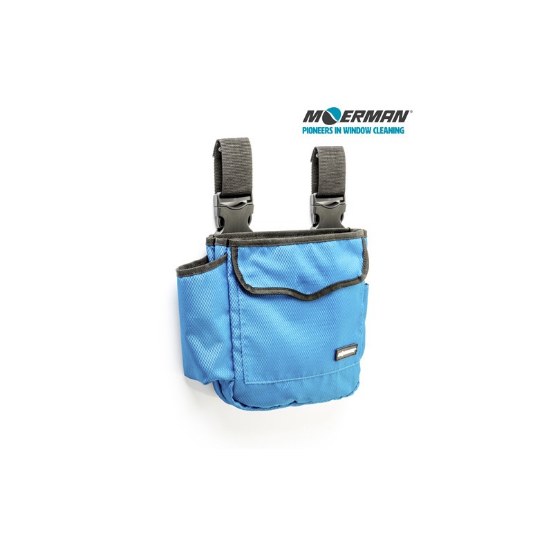 Portaútiles con varios compartimentos especialmente indicado para la limpieza en altura. Complemento perfecto para facilitar la limpieza de cristales, ventanales, etc. Permite llevar bayetas humedas y secas separadas así como botellas con detergente y otros útiles de limpieza de cristales . Cierre magnético de seguridad. Talla única, cinturón regulable.