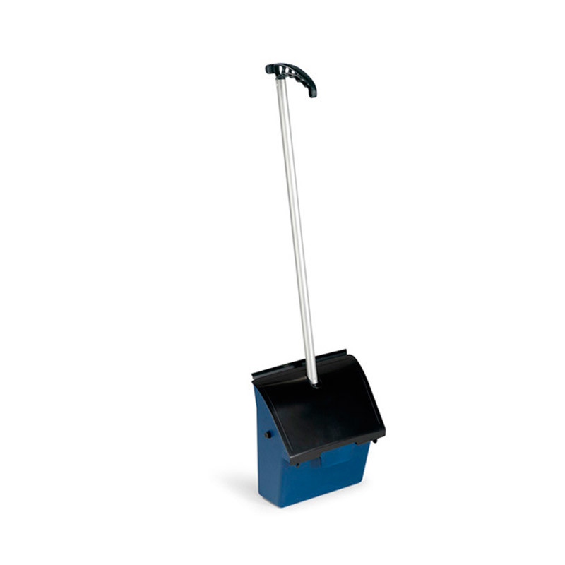 Pala de plástico rígido con sistema oscilación vertical y reborde de goma. Cierre automático de la tapa cuando se alza, para evitar derrames.