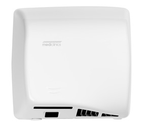 Secadora de manos por aire caliente. Accionamiento automático por aproximación de las manos. Seca las manos en tan sólo 12 segundos. Dispone de un sistema de desconexión automática de la unidad transcurridos los 30 segundos de uso continuado de la misma. Adecuado para lavabos con alta frecuencia de paso. Cumple con las directrices de Minusvalía ADA.