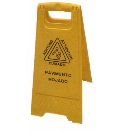 Señalización advertencia de pavimento mojado en color amarillo de alta visibilidad para evitar accidentes. Esta señal para avisar de que el suelo está mojado es imprescindible en cualquier lugar público o empresa. Señalice que el suelo está recién limpio de una forma muy fácil y rápida gracias a estar señal de plástico.