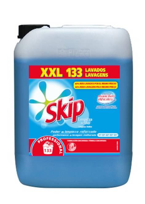 Skip Líquido es un detergente de altas prestaciones para el lavado de todo tipo de ropa. Proporciona unos resultados inmejorables, eliminando las manchas en profundidad y refrescando completamente la ropa. Su formato en líquido permite una dosificación y manipulación cómoda y segura, resultando ideal para el cliente profesional.