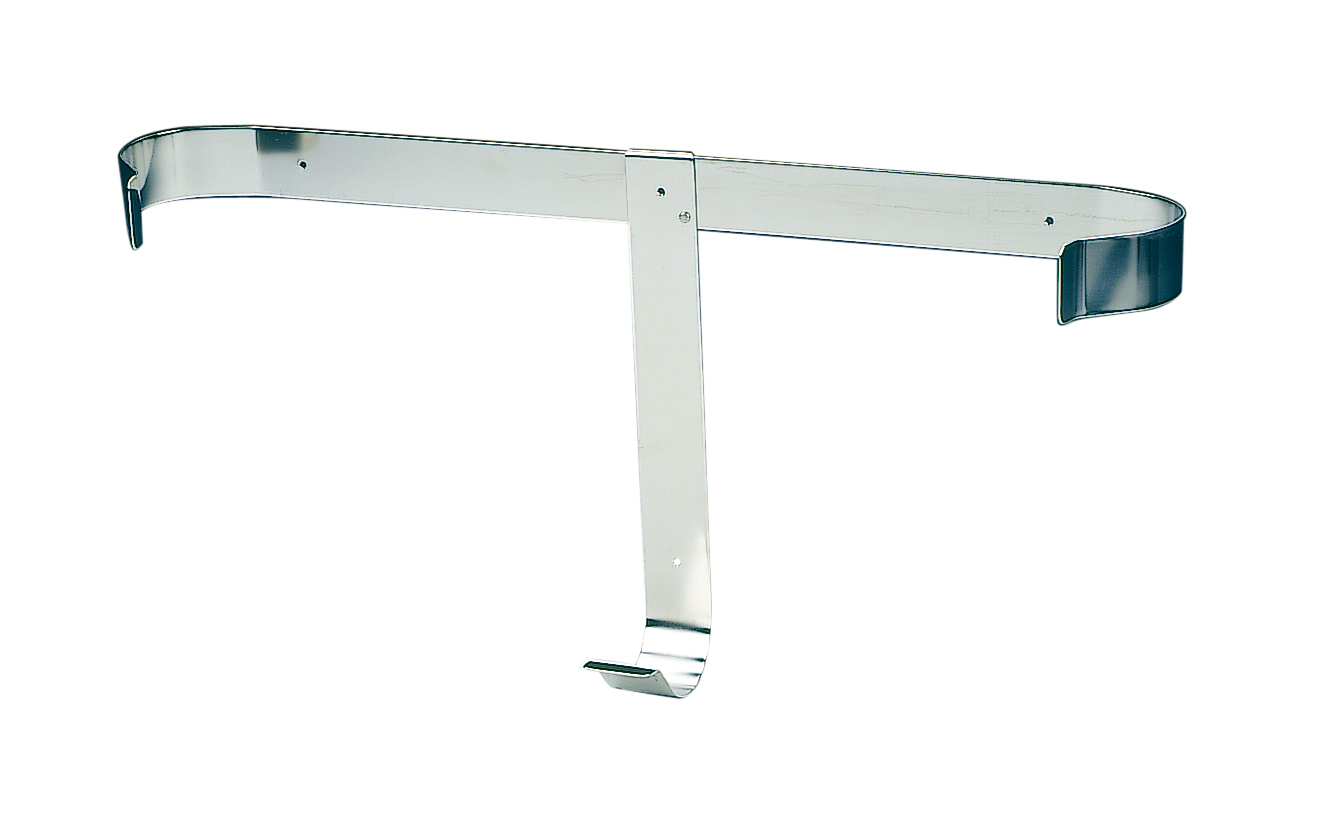 Soporte para salvavidas construido en acero inoxidable. Puede colgarse directamente a la pared.