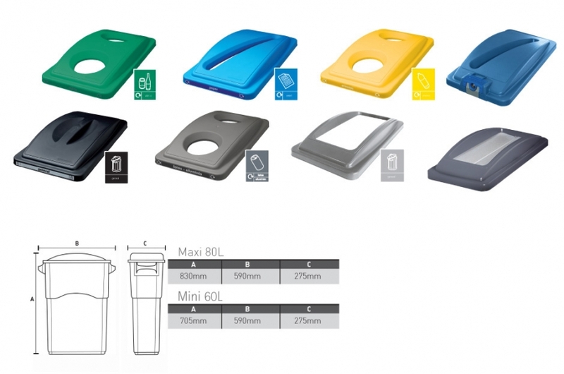 Tapa estándar para papelera ecosort de 60 o 80 litros. Papelera La gama EcoSort consiste en dos tipos de cuerpo; EcoSort Mini y EcoSort Maxi. Las tapas EcoSort están disponibles en 5 colores, permitiendo así una gran variedad de posibilidades de reciclaje.