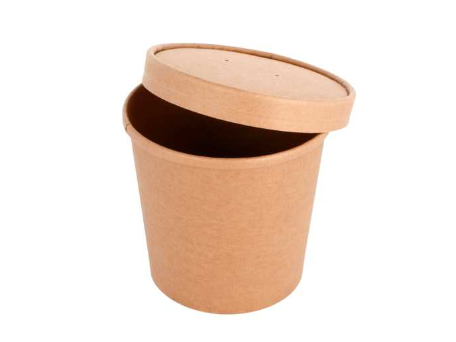 Tarrina de cartón kraft con tapa. Válido para congelación. Buena resistencia térmica y microondable.