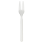 Tenedor desechable biodegradable y compostable. Están hechos de PLA / CPLA, un bioplástico a partir de recursos 100% naturales como el almidón de maíz, caña de azúcar o mandioca, por lo que procede de recursos renovables.